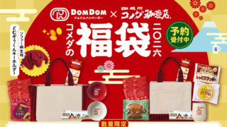 食のイベントコメダ珈琲店「2026年福袋」予約受付開始。ドムドムハンバーガーとの初コラボで限定グッズ登場 2026年1月1日(木)~1月6日(火)コメダ珈琲店で「2026年コメダの福袋」販売。ドムドムハンバーガーとコラボした限定グッズなどがセットになったおトクな福袋。 2025.11.12食のイベント