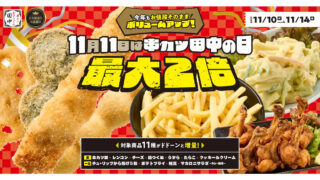 食のイベント「串カツ田中の日」11月10日~14日開催。対象メニューがボリュームアップ&“タナカさん割引”実施 2025年11月10日(月)~11月14日(金)串カツ田中で「串カツ田中の日」キャンペーン 開催。「対象商品11品がお値段そのまま最大2倍ボリュームアップ」と「“タナカ”さん割り」の二本立てで行われます。店内飲食限定。 2025.11.04食のイベント