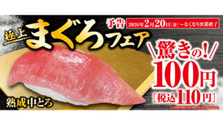 食のイベントはま寿司「のどぐろと旨ねた大漁祭り」開催。“白身のトロ”のどぐろが110円 2026年2月17日(火)から、はま寿司で「のどぐろと旨ねた大漁祭り」開催。「炙りのどぐろ・つぶ貝のキムチ和え軍艦・ベーコンマヨ軍艦」が110円。大とろやきんき、炙り三昧、サイド・デザートまで幅広いラインナップが揃います。 2026.02.17食のイベント