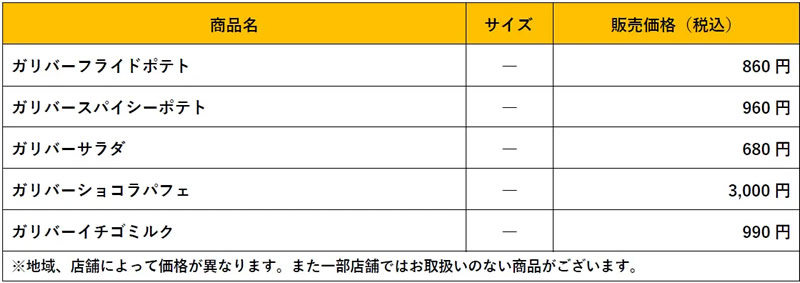 さらに、人気のサイドメニュー『びっくりフライドポテト』Lサイズを2倍量にした「ガリバーフライドポテト (860円)」と、スパイスで刺激的に仕上げた「ガリバースパイシーポテト (960円)」もラインナップ。