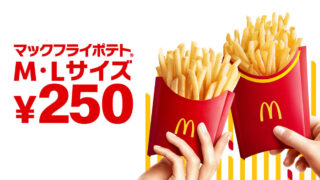 食のイベント最大150円おトク!マクドナルド「マックフライポテト」M・Lサイズ250円キャンペーン開催 2026年3月9日(月)~3月22日(日)マクドナルドで「マックフライポテト」M・Lサイズを特別価格250円で販売するキャンペーンを開催。通常M350円・L400円の人気サイドメニューをおトクに楽しめます。 2026.03.06食のイベント
