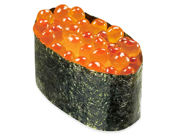 白鮭のイクラの中でも大粒のものだけを厳選した「大粒いくら (200円)」は、プチッと弾ける食感と、タレの旨みがしっかり染み込んだ濃厚な味わい。