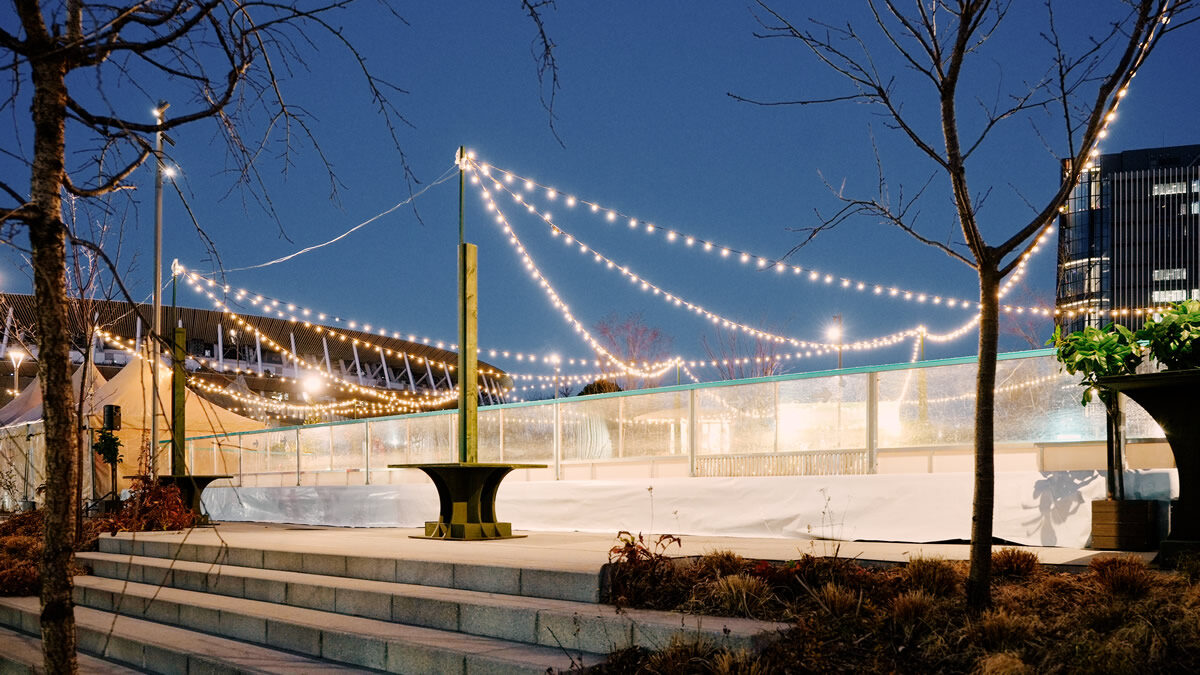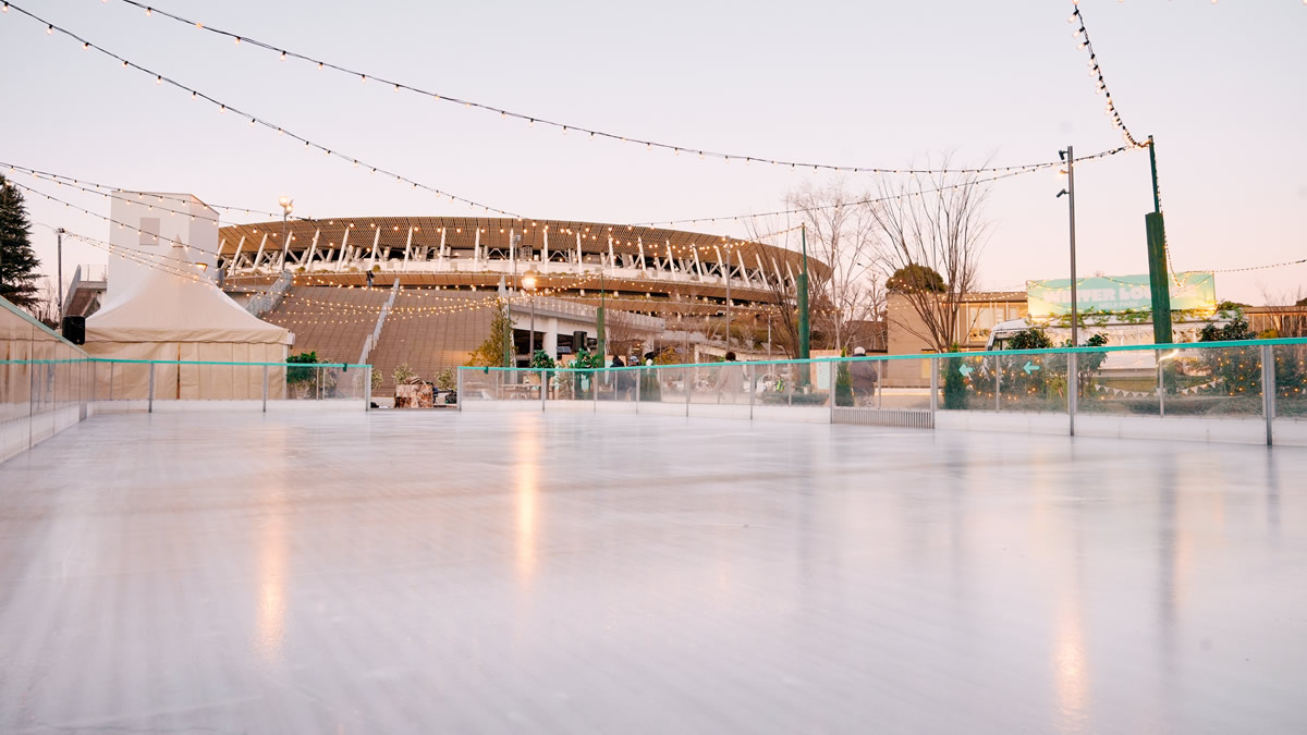 公園内の「みち広場」には、明治公園としては初となるアイススケートリンクが登場。