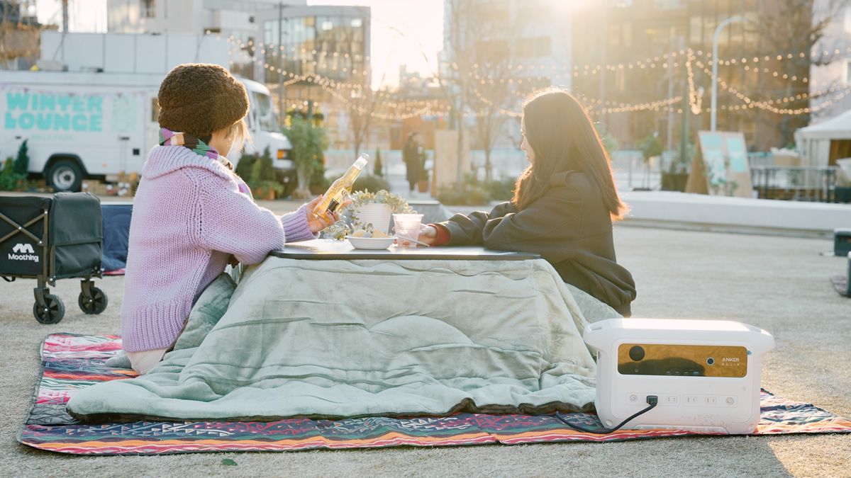 ポータブル電源を活用したこたつセットで、寒さを気にせず快適に過ごせます。