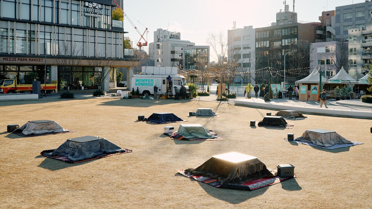冬の公園でくつろぐ「屋外こたつ体験」