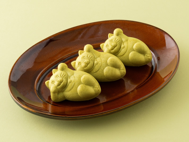 招き猫をかたどったもなかに、香り高い宇治抹茶餡を詰めた詰め合わせ。ギフトにも選びやすい一箱です。※数量限定:1日15箱