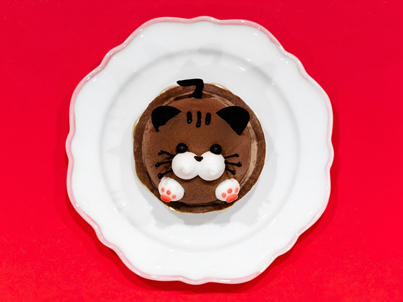 チョコレートムースとバナナムースを重ねた、猫モチーフのケーキ。見た目以上に満足感のある味わい。 - アンテンドゥ「福よこい まねきねこセット」640円