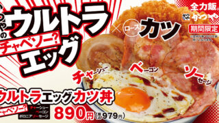 食のイベントかつや、肉尽くしの新作「ウルトラエッグカツ丼」登場。ロースカツ×チャーシュー×ベーコン×ソーセージ×目玉焼き とんかつ専門店「かつや」から期間限定メニュー「ウルトラエッグカツ丼」が登場。ロースカツ丼にチャーシュー、ベーコン、ボロニアソーセージ、目玉焼きを豪快にのせた肉尽くしの一杯。2026年3月13日(金)より全国の店舗(一部除く)で販売。 2026.03.10食のイベント