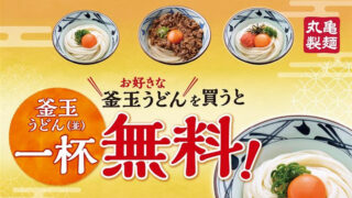 食のイベント丸亀製麺「釜玉うどん1杯無料」キャンペーン開催。2月25日(水)から3日間限定 2026年2月25日(水)~2月27日(金)全国の丸亀製麵で、釜玉うどんを1杯購入すると「釜玉うどん(並)」がもう1杯無料に。明太釜玉や牛すき釜玉も対象の見逃せないおトクなキャンペーン。 2026.02.20食のイベント