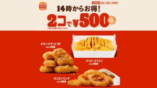 食のイベントバーガーキングの人気サイドメニューが「2コで500円」1月23日~29日開催。今だけ最大250円もおトク 2026年1月23日(金)~1月29日(木)バーガーキングで「人気サイドメニューが2コで500円」のキャンペーンを開催。今だけ最大250円もおトク。期間中毎日14時から販売されます。 2026.01.23食のイベント