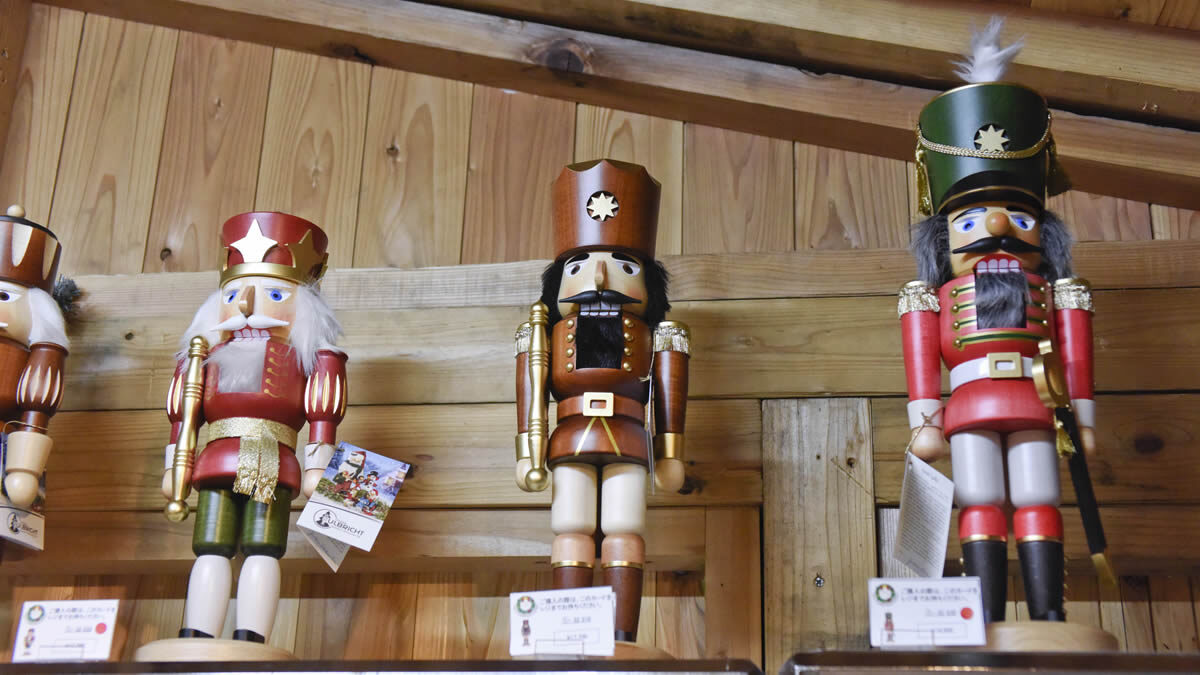 そして、ドイツから直輸入されたクリスマスオーナメント、スノーグローブ、キャンドルホルダー、スチームクリームといった雑貨、木のおもちゃ、くるみ割り人形など手仕事のぬくもりを感じるアイテムも並びます。